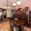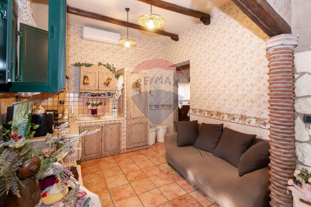 Ingresso su ampia cucina in muratura open space con salone dotato di camino, termoconvettore e climatizzatore.