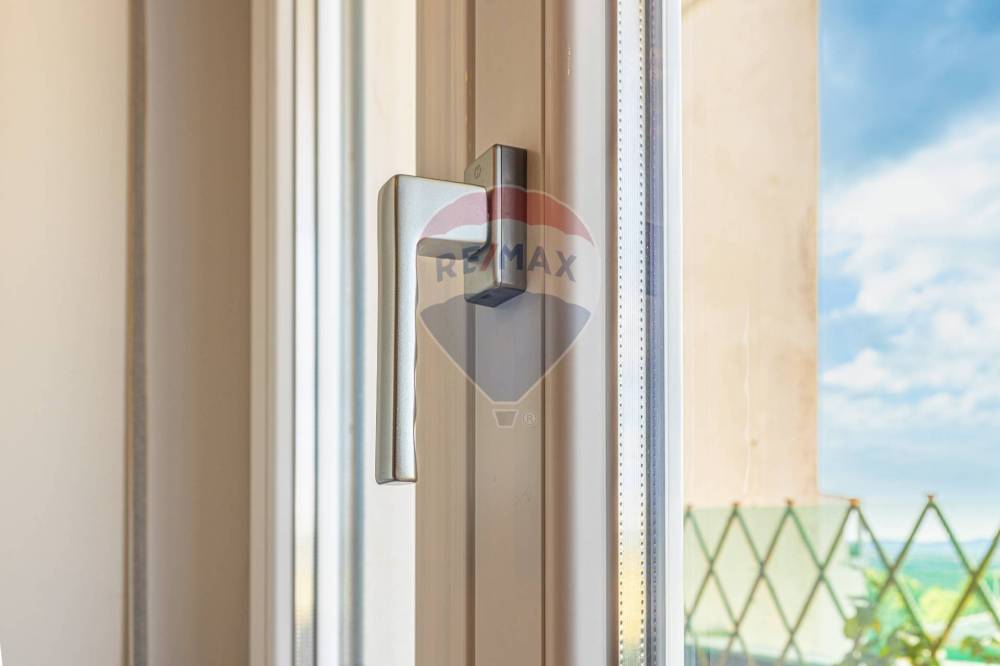 All’ingresso troviamo un ampio soggiorno con accesso al terrazzo che si affaccia sul retro, regalando una magnifica vista panoramica verso sud ovest