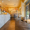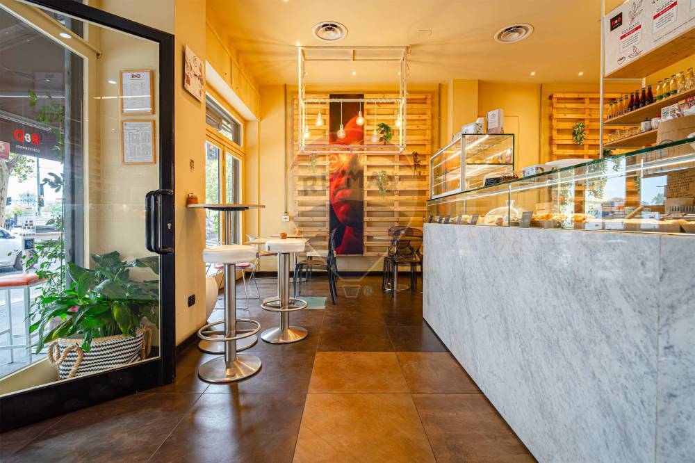 Gli spazi interni sono così composti: ingresso, ampio locale unico con  bancone posizionato al centro e  zona tavoli con 45 posti, spazio adibito a laboratorio ovvero zona preparazione, antibagno con lavandino, bagno disabili, spogliatoio finestrato, secondo bagno e due cantine al piano S1.