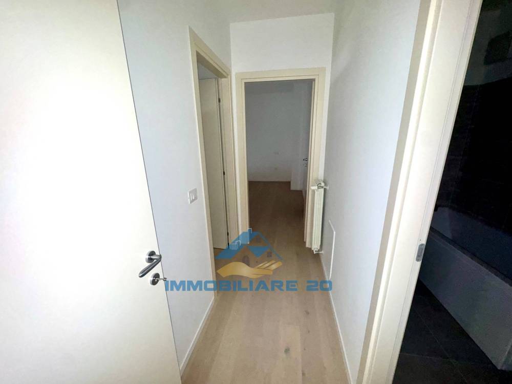 soggiorno con cucina a vista, disimpegno, due camere, due bagni, due balconi