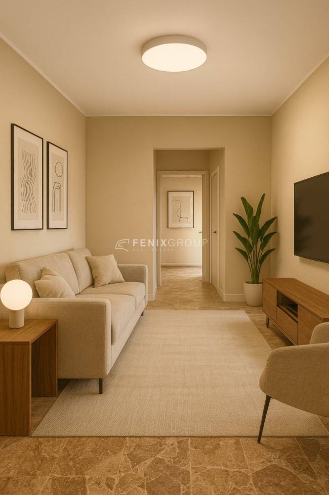 L’ingresso si apre su un soggiorno ampio e luminoso, con cucina a vista, pensato per creare un ambiente conviviale e accogliente. La zona giorno si affaccia su due balconi paralleli che garantiscono una buona esposizione e una gradevole luce naturale durante tutto l’arco della giornata. La disposizione interna prosegue con due camere da letto ben proporzionate e un bagno finestrato anch'esso completamente ristrutturato.