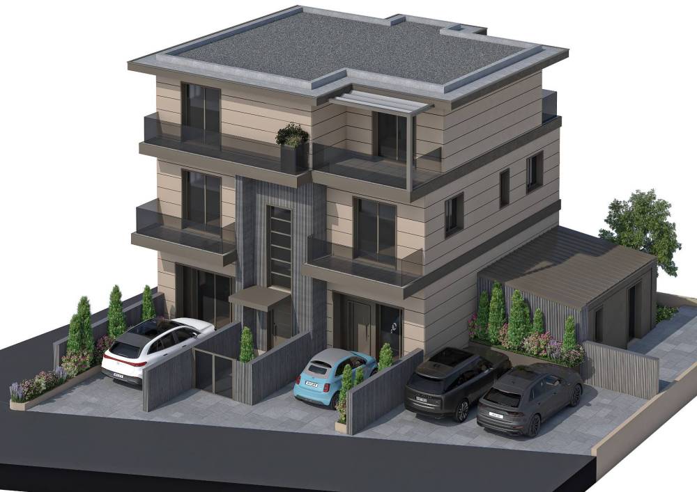 Esternamente la palazzina - che conta soltanto 5 appartamenti in totale - sarà protetta da cappotto termico e fornita di impianto fotovoltaico (15 Kw) e solare termico condominiali.