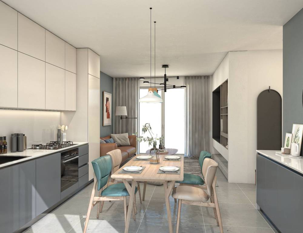Appartamento di nuova costruzione, occupante l'intero PIANO SECONDO/ULTIMO, della superficie di 90 mq. circa, composto da ampio soggiorno con angolo cottura (volendo separabile), 2 camere da letto matrimoniali, 2 bagni (entrambi finestrati), terrazzo prospiciente la zona living di 9 mq. (coperto con pergola) e ulteriori 3 balconi di complessivi 13 mq. circa.