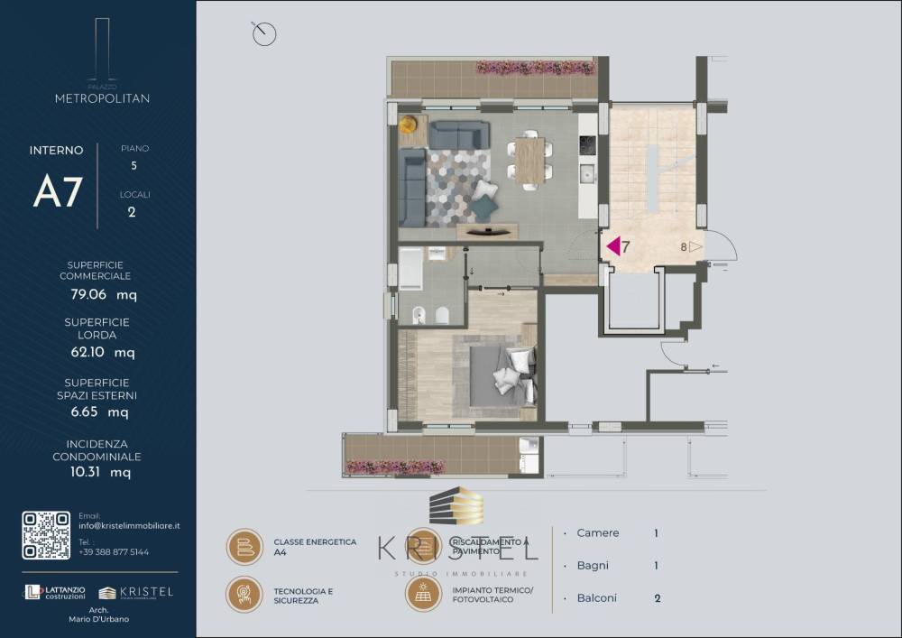 L'immobile rappresenta una nuova concezione di abitare basata sull'impiego di materiali e fonti di energia rinnovabili che permettono all'acquirente un consistente risparmio sui consumi ; inoltre è dotato di struttura in cemento armato antisismico, cappotto perimetrale, coibentazioni termo acustiche, serramenti termici in pvc, domotica, videocitofono, telefono, tv satellitare, impianto radiante a pavimento, aria condizionata ed impianto fotovoltaico condominiale.