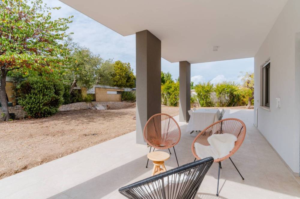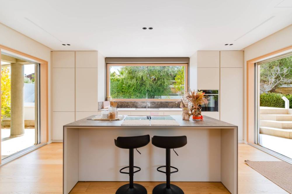 Al piano terra, un raffinato porticato introduce alla luminosa zona living di circa 130 m², un grande open space dominato da linee pulite e finiture naturali. La cucina su misura firmata Lorusso Arredamenti, con elettrodomestici di fascia alta, si fonde armoniosamente con la zona pranzo e il soggiorno, creando un ambiente conviviale e di grande impatto estetico.
