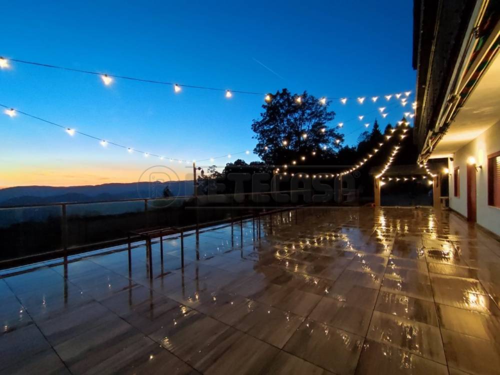 Nogarole Vicentino - Monte Faldo. Vuoi aprire o spostare la tua attività ricettiva? Cerchi una location dove portare il tuo ristorante? Immerso nel verde, con una vista panoramica sui colli proponiamo in vendita questa caratteristica struttura che ricorda i rifugi di montagna, complice anche la posizione a circa 700 metri di altezza sul mare. Il terrazzone a servizio della sala al piano terra offre uno spazio esterno rivolto a sud ovest dove gustare splendidi tramonti sulla valle. La struttura si sviluppa su tre livelli fuori terra e un piano seminterrato, è circondata da quasi 20.000 mq di terreno esclusivo tra prati e boschi. Al piano terra troviamo il bancone del bar con la sala ristorante/pizzeria, oltre alla cucina completamente accessoriata, il forno per le pizze ed il servizio. Al primo piano invece sono presenti: il bagno e spogliatoio per il personale, una grande sala da ricevimenti e una veranda mansardata. All'ultimo piano, ancora al grezzo, il progetto prevede la realizzazione di camere da letto per gli ospiti della struttura. Nell'interrato cantine e magazzini oltre allo spazio adibito a posto auto coperto sotto il terrazzone. Le metrature, la conformazione e la posizione posta tra due ricche vallate ma al contempo immersa nel verde danno a questa struttura un elevato potenziale in divenire. Compresa nella vendita c'è anche una piccola casetta, attualmente locata, con posto auto coperto. Richiesti € 435.000 (GM2506)