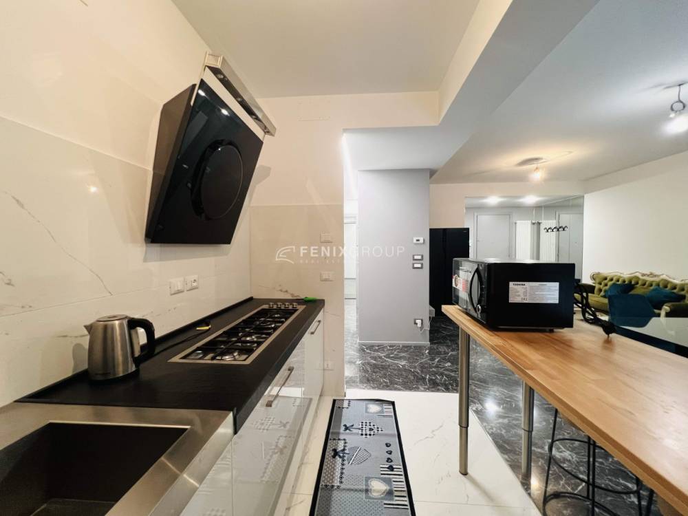 L'immobile si apre su una zona giorno open-space elegante ed accogliente, dove il soggiorno e la cucina a vista si fondono armoniosamente in un unico ambiente ideale per momenti di relax e convivialità. Le ampie aperture che consentono l'accesso al terrazzo abitabile garantiscono un'ottima illuminazione naturale.