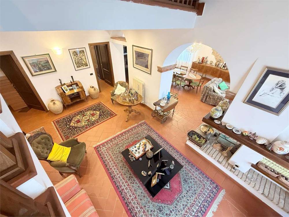 L'appartamento, della superficie di circa 280 mq, è composto da un ingresso al piano terra che conduce al piano primo suddiviso in salone con camino, ampia sala da pranzo, cucina abitabile con secondo camino, 2 camere da letto matrimoniali entrambe con bagno privato en suite, lavanderia e bagno.