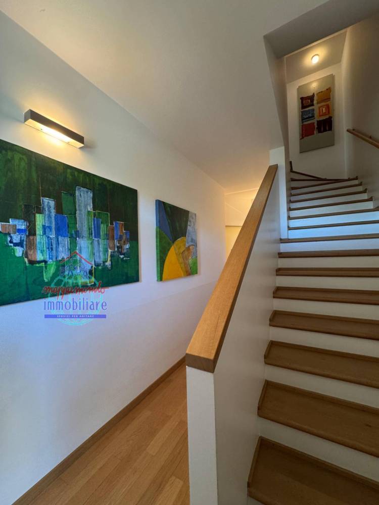 FINITURE: VILLA RISTRUTTURATA CON MATERIALI DI ALTO PREGIO, pavimenti in parquet, porte bianche, gres effetto pietra, pavimenti in cotto tavernetta e scala, finestre in alluminio al piano secondo, infissi in legno con doppio-vetro in taverna ed al piano primo, scuri esterni in legno, cancelletti di sicurezza, zanzariere, termostato per la regolazione della temperatura installato in ogni piano, impianti di riscaldamento e raffrescamento suddivisi in ogni piano, tendoni parasole, impianto d'allarme perimetrale al secondo piano, tavernetta con stufa a pellet, video-citofono, citofono in ogni piano, giardino piantumato.