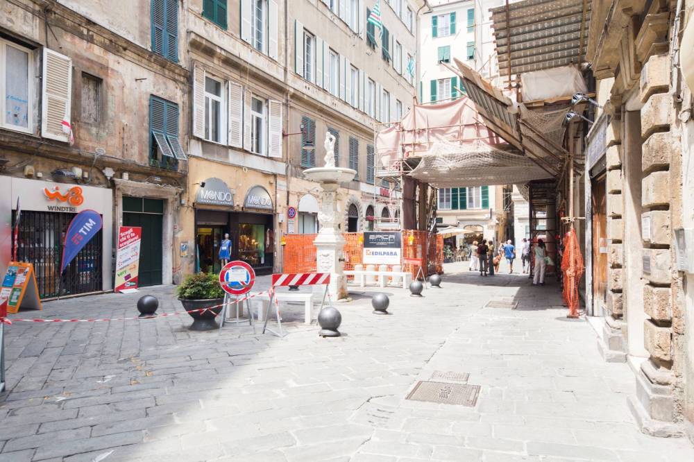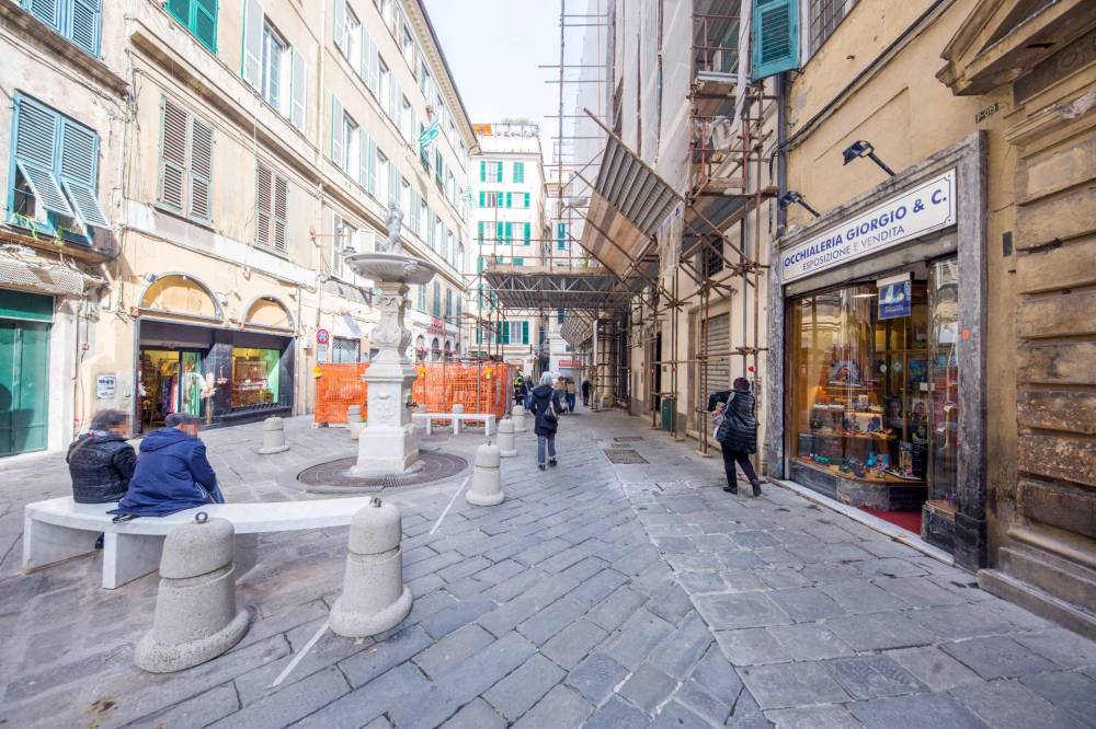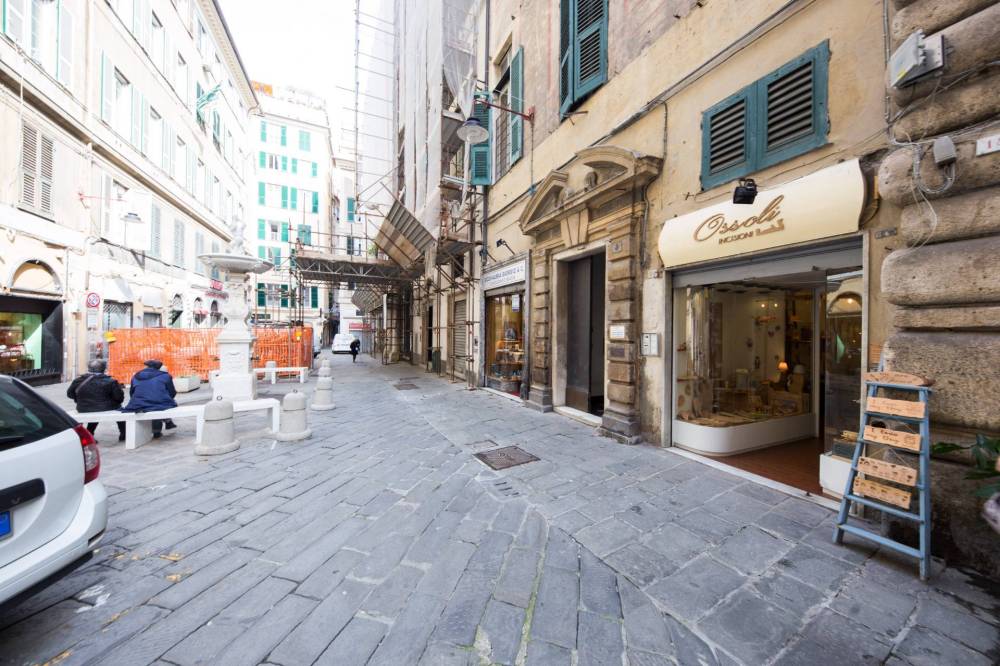 Nelle immediate vicinanze di Via San Lorenzo e Piazza Campetto, in zona di fortissimo passaggio proponiamo locale commerciale su più livelli con vetrina su strada.