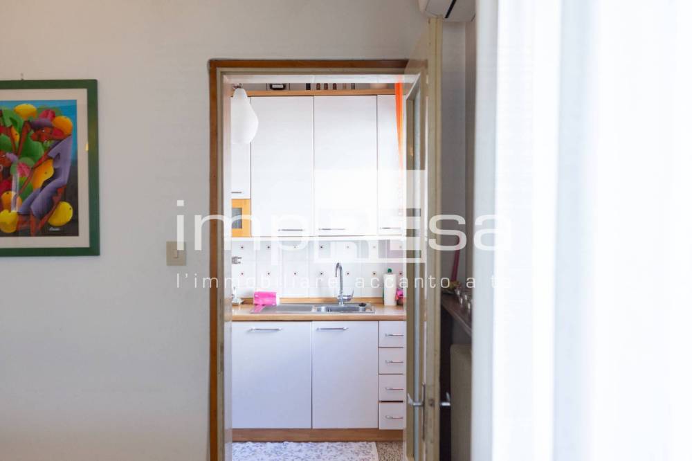 Lingresso porta ad un salone luminoso, collegato a una cucina separata. La zona giorno è completata da un bagno finestrato con doccia.