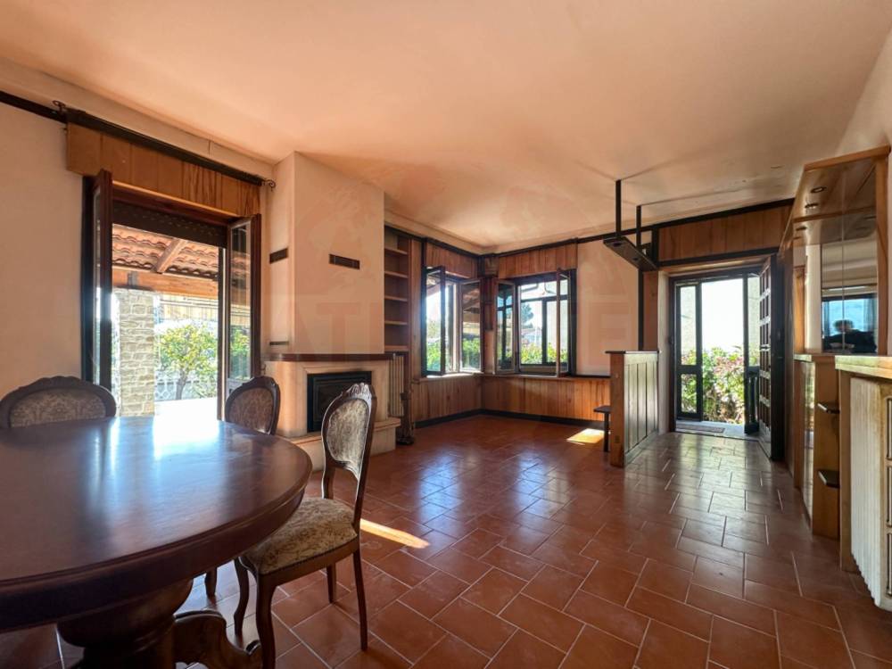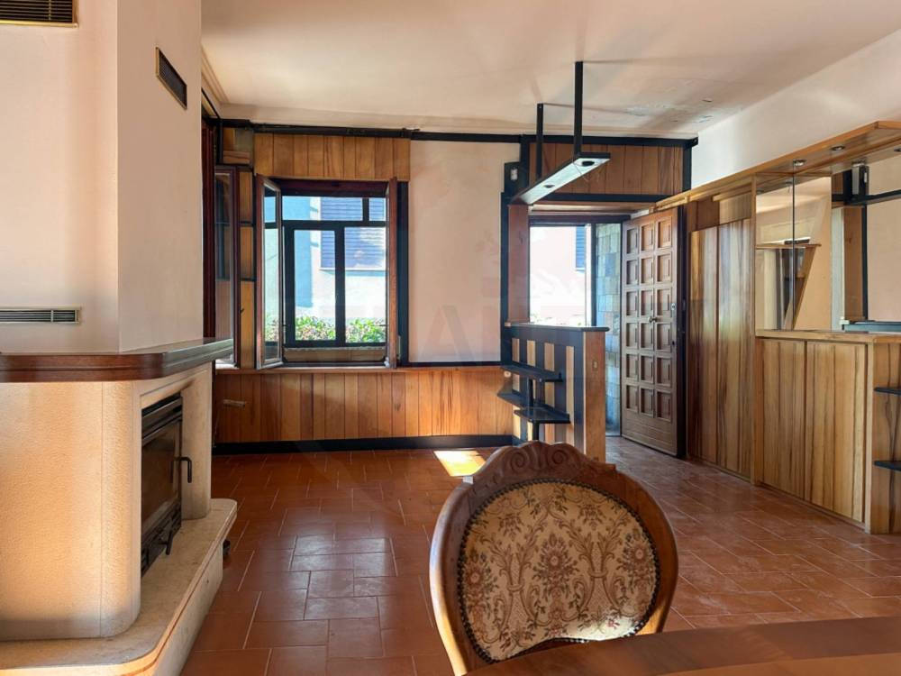 - Ingresso tramite veranda chiusa che porta a una sala con camino, ideale per creare unatmosfera calda e familiare.