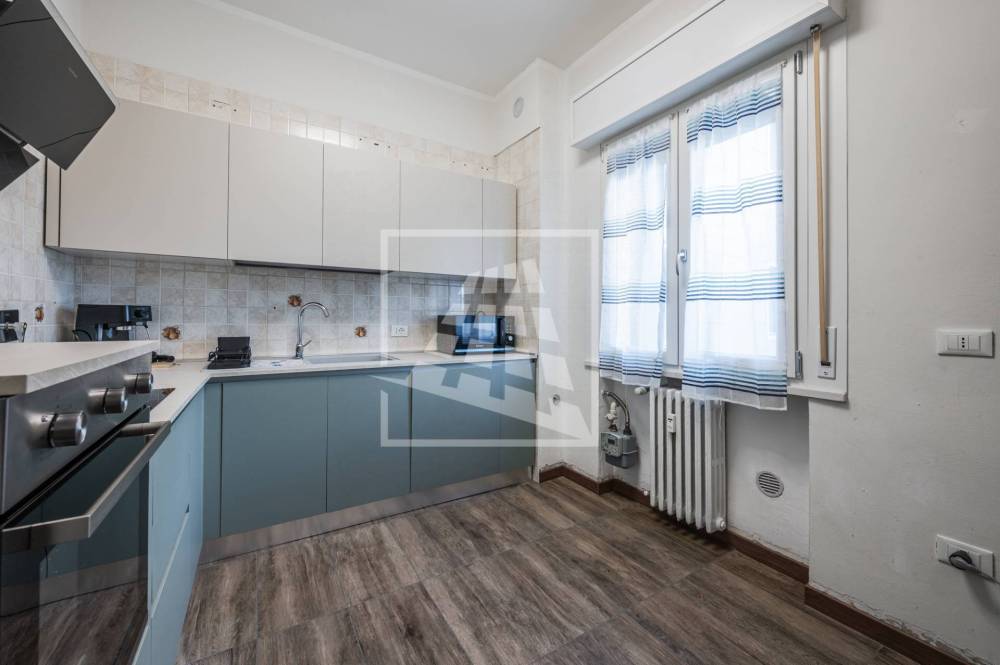 L'appartamento è valorizzato da una particolare luminosità presente grazie alla sua esposizione su tre lati ed è composto da ingresso, soggiorno, cucina abitabile e zona notte che comprende due camere da letto matrimoniali, una particolarmente spaziosa e servita da balcone e bagno finestrato completo di box doccia.