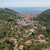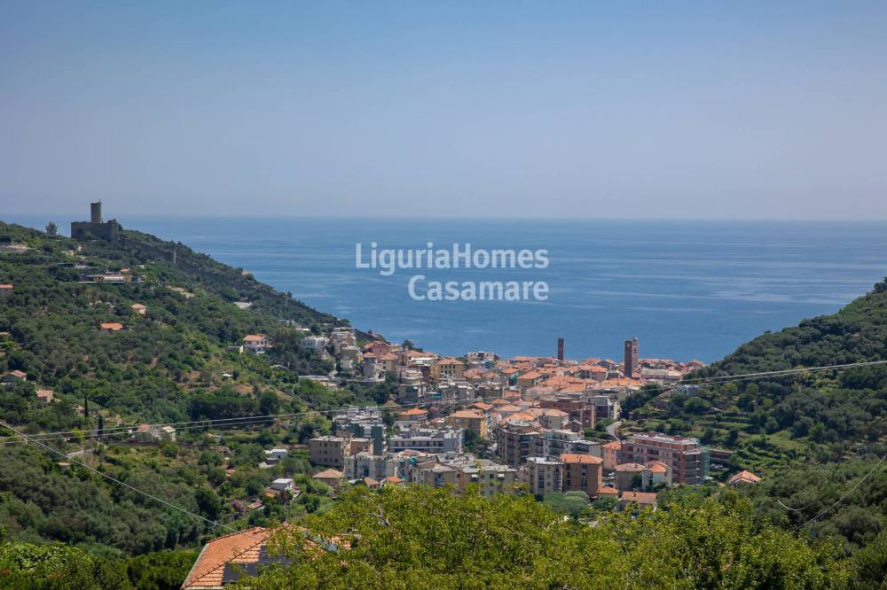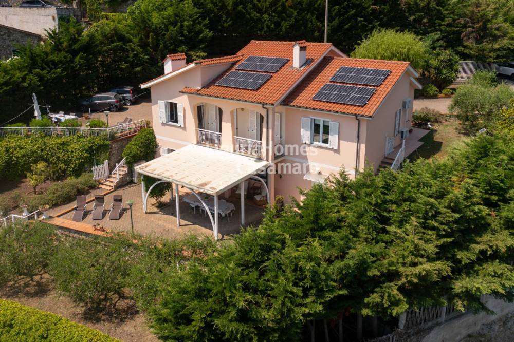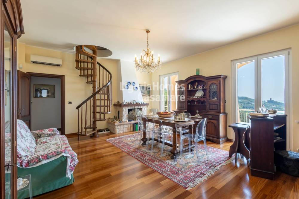 Sulla primissima collina di Noli, a pochi minuti dal mare cristallino di questa rinomata località, bellissima villa in vendita con giardino privato e spettacolare vista mare.