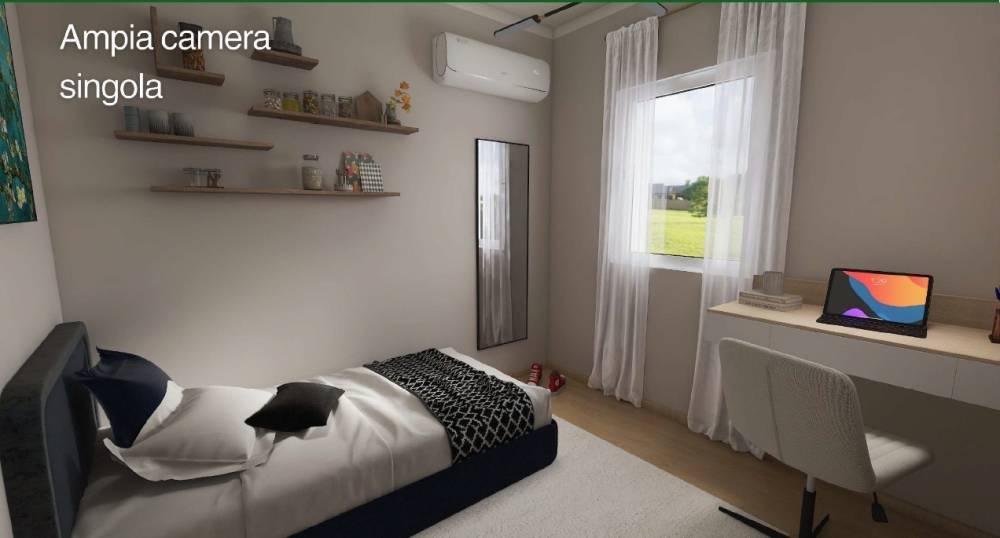 Situata in un complesso residenziale sostenibile nato dalla ristrutturazione e ampliamento di un casale del 1800. L’intervento ha trasformato l’edificio, originariamente composto da cantine, fienile e abitazioni, in un residence moderno in classe energetica A, con impianti autonomi alimentati da pompe di calore e fotovoltaico dedicato. La corte interna è stata recuperata e valorizzata come spazio conviviale comune, mantenendo elementi storici come il lavatoio in marmo e il pozzo originale. Ogni unità dispone di pertinenze private, parcheggi scoperti e un’elevata autonomia di gestione energetica. Quadrilocale di 92 m² composto da ampio living con cucina a vista, due camere da letto e bagno finestrato. L’abitazione dispone di terrazzo privato di circa 12 m² e due posti auto pertinenziali. Dotata di impianti indipendenti di ultima generazione, classe energetica A, pompa di calore con split per riscaldamento e raffrescamento, boiler per acqua calda sanitaria e impianto fotovoltaico da 2,7 kW.