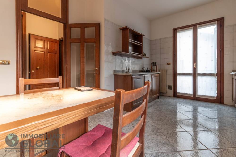 La cucina abitabile, separata dal soggiorno, è spaziosa e anch’essa servita da secondo terrazzino, ideale per chi ama cucinare con luce naturale e comodi sbocchi esterni.