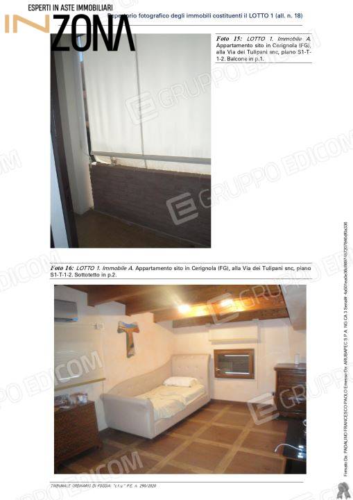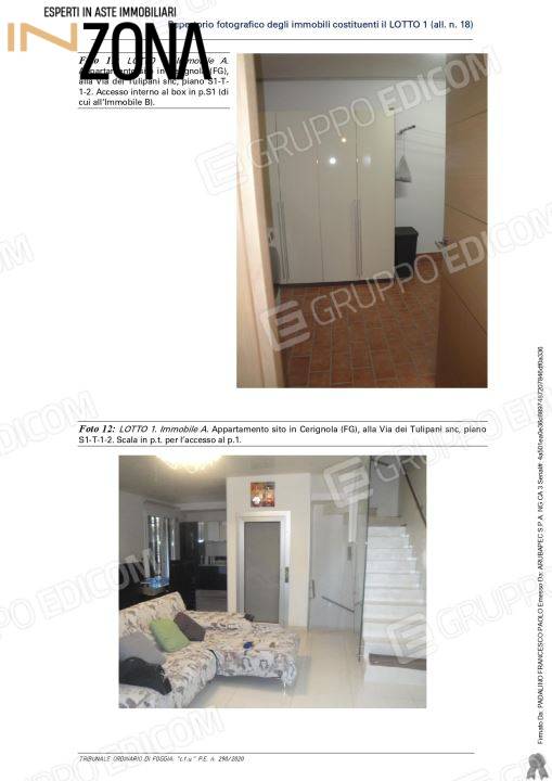 ASTA --- prezzo and euro; 119.201,70 --- risparmio and euro;39.000nBene n. 1nAppartamento distribuito su quattro livelli (P.S1-P.T.-P.1-P.2), composto da tavernetta con wc al piano seminterrato, sala, cucina e lavanderia, in piano terra, due camere con bagno al piano primo e da sottotetto con locale wc in piano secondo, oltre ad un'area giardino esterna, di proprietà esclusiva e recintata, di superficie pari a circa 110 mq.. Per una nsuperficie commerciale, complessiva, dell'immobile pari a circa 212 mq.nnBene n. 2nLocale box al piano S1, interno 9, composto da un unico ambiente destinato al parcamento delle autovetture, per una superficie complessiva pari a circa 15 mq., con ingresso carrabile da rampa comune ed ulteriore accesso interno dall'unità abitativa di cui al sub. 6.nnData venditan20/01/2026 - 18:30nnPrezzo basen and euro; 158.935,60nOfferta miniman and euro; 119.201,70nnTi piacerebbe comprare una casa all'asta ma non sai come fare perché non sei un esperto?nnContattaci per avere maggiori informazioni su questo immobile e su come poterlo acquistare in totale sicurezza.nnINZONA offre un servizio di ASSISTENZA TECNICO - LEGALE per l'acquisto di immobili in asta attraverso queste attività:nnPRIMA CONSULENZA: Appuntamento presso la nostra sede di Foggia, presso il Centro direzionale E9 in Via Donato De Leonardis, 2 - 71121 Foggia (FG), per offrire chiarimenti sulle aste ed ascoltare le tue esigenze immobiliari.n- Mediazione creditizian- studio fattibilità per la partecipazione in asta con mutuo fino al 100%n- Studio della perizia e della documentazione dell'immobilen- Accertamenti catastali per eventuali abusi edilizin- Accompagnamento Visita Immobilen- Disbrigo pratiche per la partecipazione all'asta (anche solo compilazione della domanda)n- Rappresentanza Legale il giorno della venditan- Rilascio del decreto di trasferimento in tempi brevin- Assistenza per il Saldo Prezzon- Compilazione F24 per Tassen- Disbrigo Pratiche per Eventuale Sanatorian- Assistenza alla Consegna ImmobilennContattaci per avere maggiori informazioni sull'immobile e su come partecipare all'asta.nnnnnn