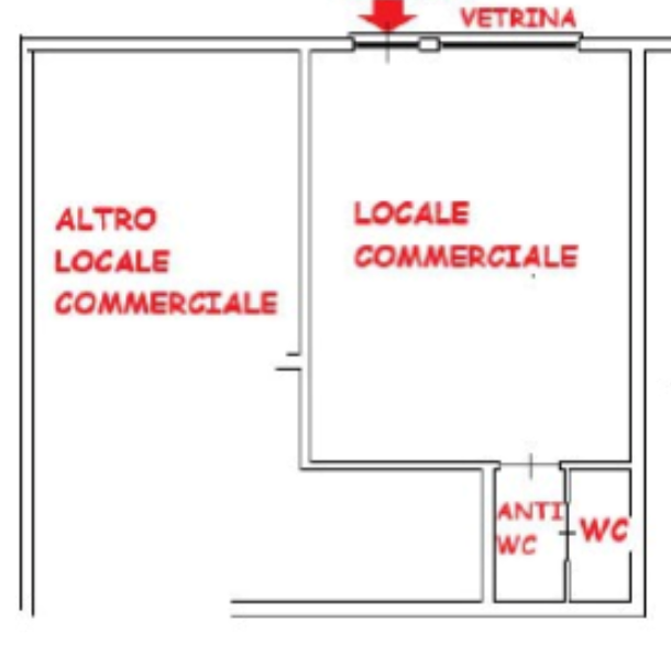 Trattasi di negozio di 32mq al piano terreno composto da vano principale e servizi.