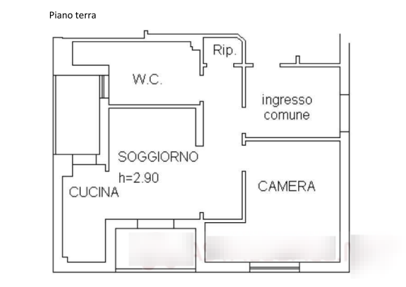 L'immobile è posto al piano terra ed è cosi composto: ingresso/disimpegno, soggiorno con cucina, bagno, camera da letto, ripostiglio e balconi.