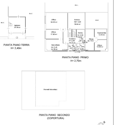 Porzione di capannone su due livelli fuori terra di circa mq 506,00, con area scoperta pertinenziale di circa mq 529,00, impropriamente adibita a uffici al piano terra.