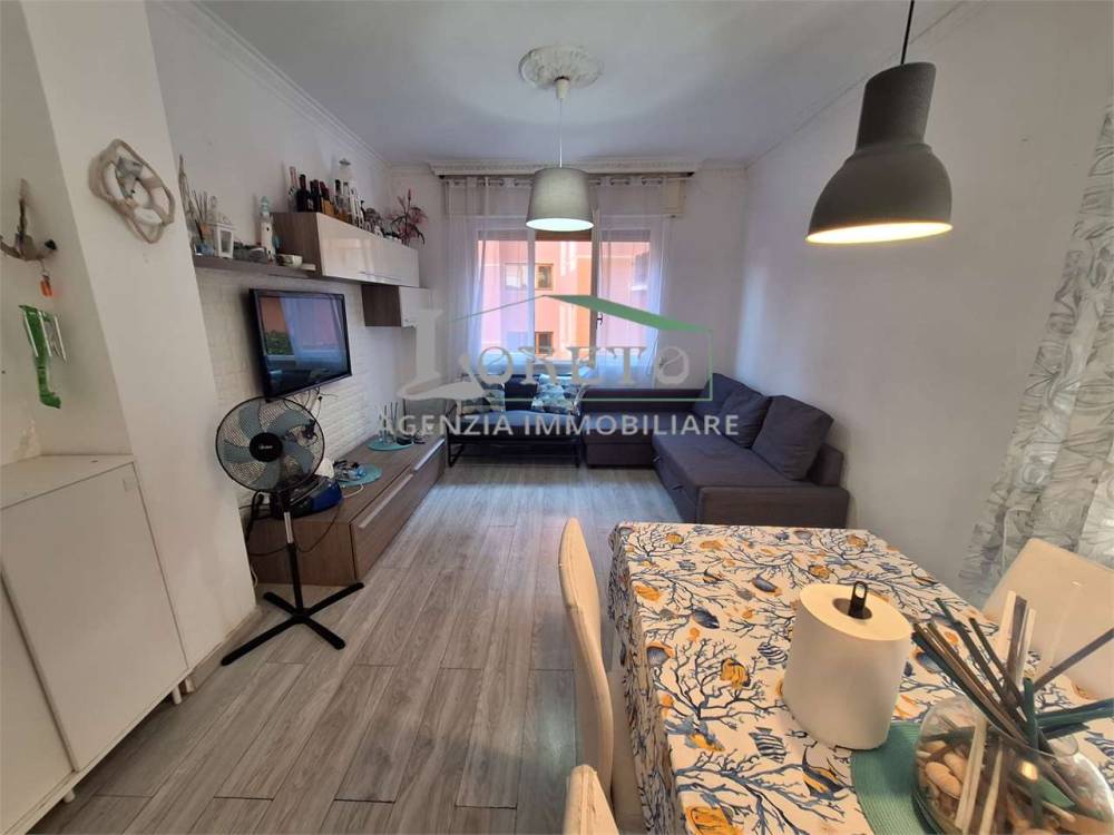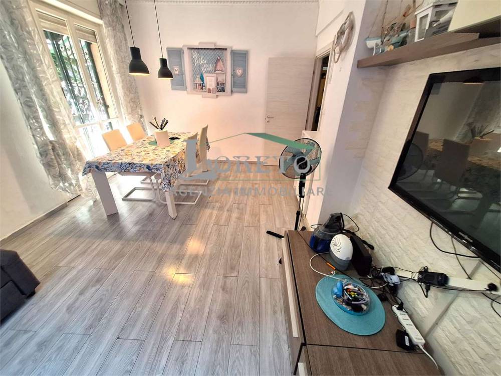 Scopri questo spazioso appartamento di 100 mq situato al primo piano, facilmente accessibile grazie all'ascensore. L'ingresso accogliente, completo di un pratico ripostiglio, conduce a un luminoso soggiorno, ideale per momenti di relax e convivialità. Il cucinotto, offre accesso a una bella balconata, perfetta per godere di cene all'aperto.