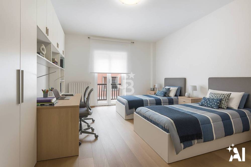 Lingresso conduce in un luminoso soggiorno con angolo cottura e accesso al balcone, perfetto per chi ama vivere la casa in modo conviviale. La zona notte comprende due ampie camere da letto con grandi finestre e un bagno moderno finestrato.