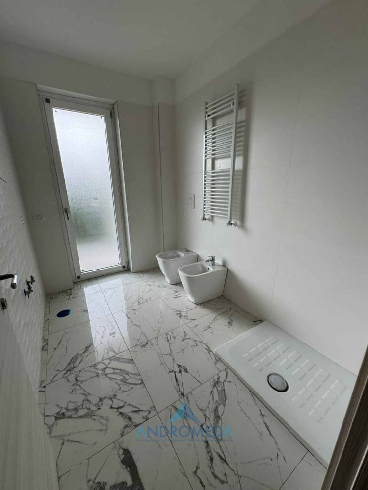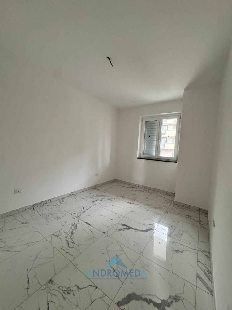 L'appartamento si compone di: ampio salone living con cucina a vista, due camere da letto, di cui una con bagno privato, un ulteriore bagno di servizio e un ampio ripostiglio/lavanderia.