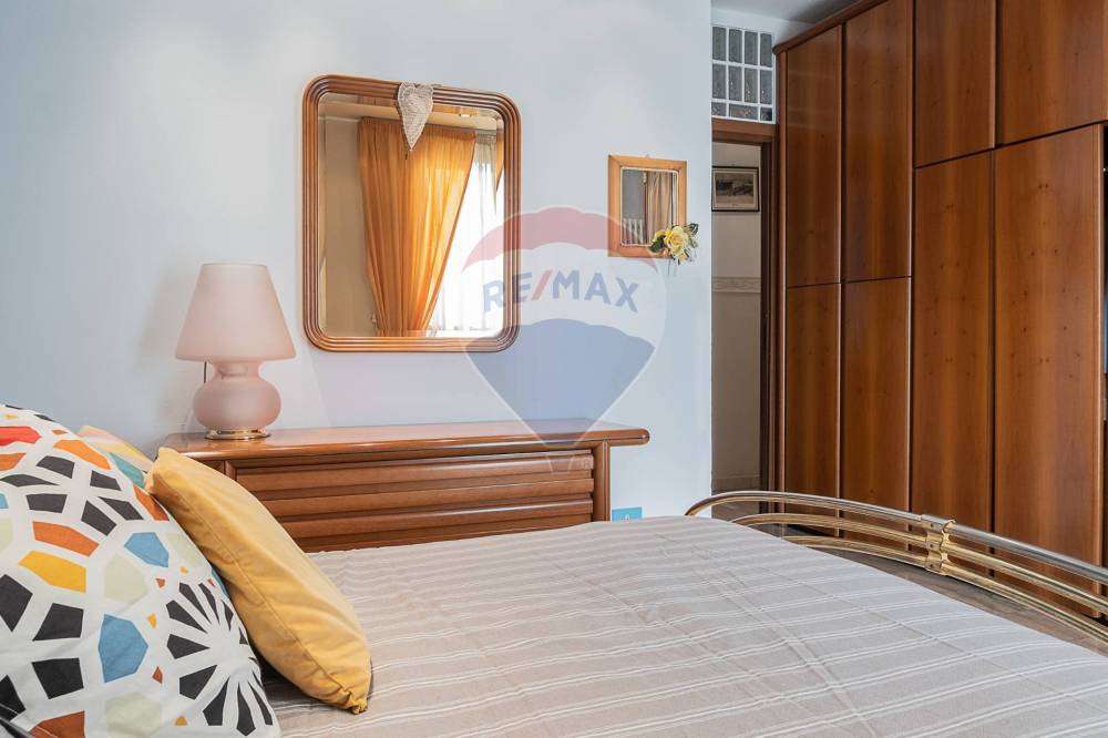 La zona notte ospita due camere da letto: la camera matrimoniale affaccia direttamente sul terrazzo, mentre la seconda stanza è arricchita da un pratico ripostiglio/cabina armadio.