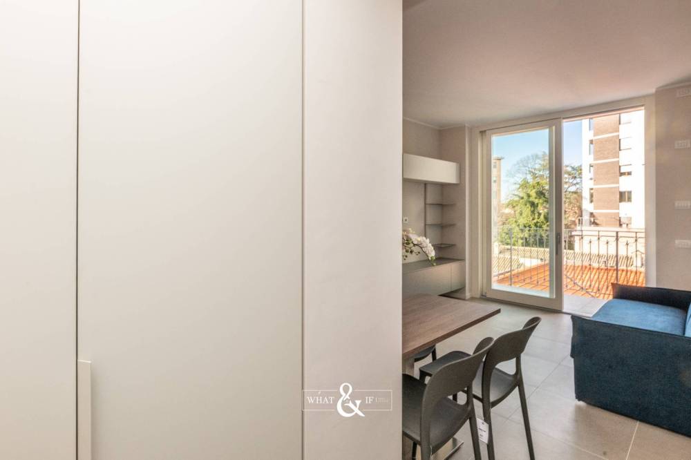 Appartamento bilocale al piano secondo composto da soggiorno con cottura, antibagno e bagno, camera matrimoniale. Dotato di arredo completo: cucina con elettrodomestici, soggiorno con divano-letto, bagno completo di doccia, camera completa di armadio e scrivania oltre al letto (mancano solo tv e lavatrice).