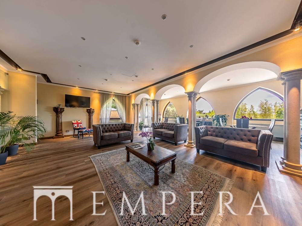 La proprietà si estende su 2 ettari di parco privato con piscina di 200 mq, ampi parcheggi, ristorante, palestra e 2 campi da padel in costruzione.