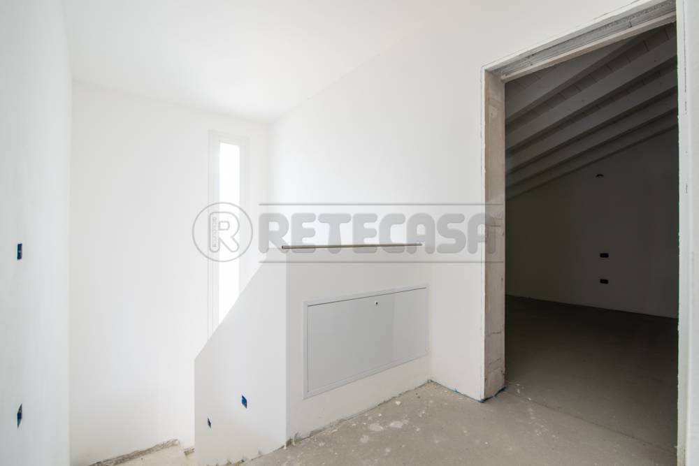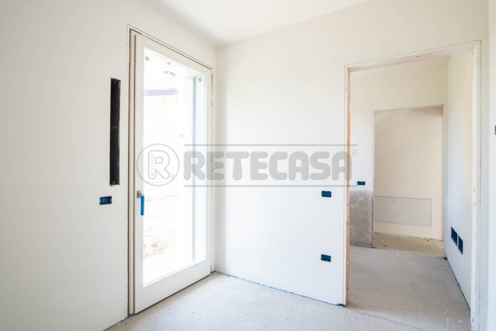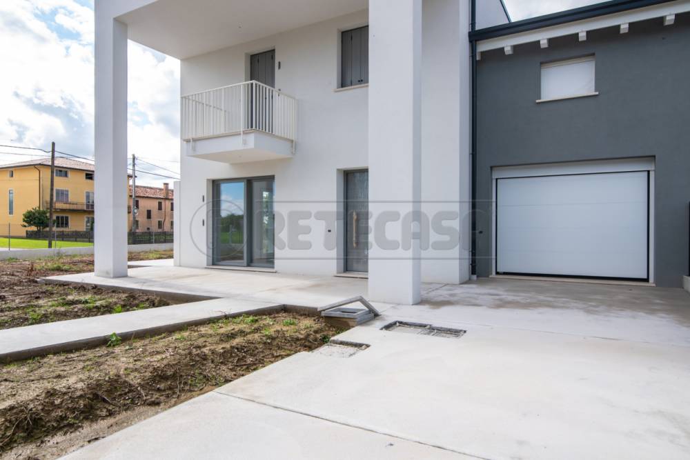 SANTA GIUSTINA IN COLLE Proponiamo in esclusiva villetta a schiera di nuova costruzione, parte di un piccolo complesso di sole 3 unità, collegate tra loro solo dal garage. Ogni abitazione gode di ingresso indipendente, ampio giardino privato e ottima esposizione. Al piano terra si trova un’ampia zona giorno open-space di circa 40 mq con angolo cottura, disimpegno, lavanderia, bagno finestrato, garage comunicante, portico e pompeiana esterna ideale per pranzi all’aperto. Al piano primo due camere matrimoniali, ciascuna con spazio esterno dedicato: loggia per la più piccola e poggiolo per la principale, oltre a un secondo bagno di circa 9 mq. Sullo stesso livello troviamo un sottotetto praticabile che può essere utilizzato come terza camera o studio. Finiture personalizzabili da ampio capitolato: riscaldamento a pavimento con pompa di calore, impianto fotovoltaico, ventilazione meccanica, serramenti in legno bianco con triplo vetro, scuri in legno, pavimenti in gres o legno a scelta, aria condizionata e cappotto termico da 14 cm per alte prestazioni energetiche. Soluzione ideale per chi cerca comfort moderno, indipendenza e qualità costruttiva in un contesto tranquillo ma comodo ai servizi. Classe energetica A4-22,10 kWh/mqanno. Prezzo su richiesta. RIF. KTX306