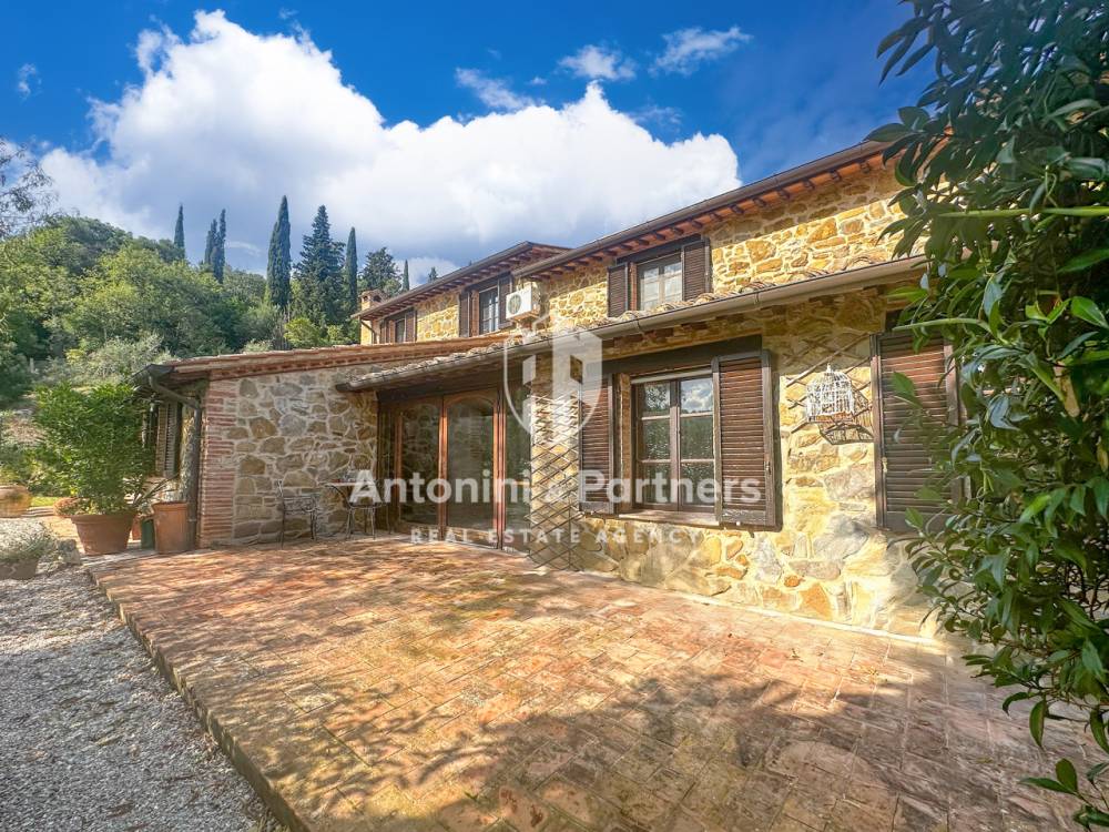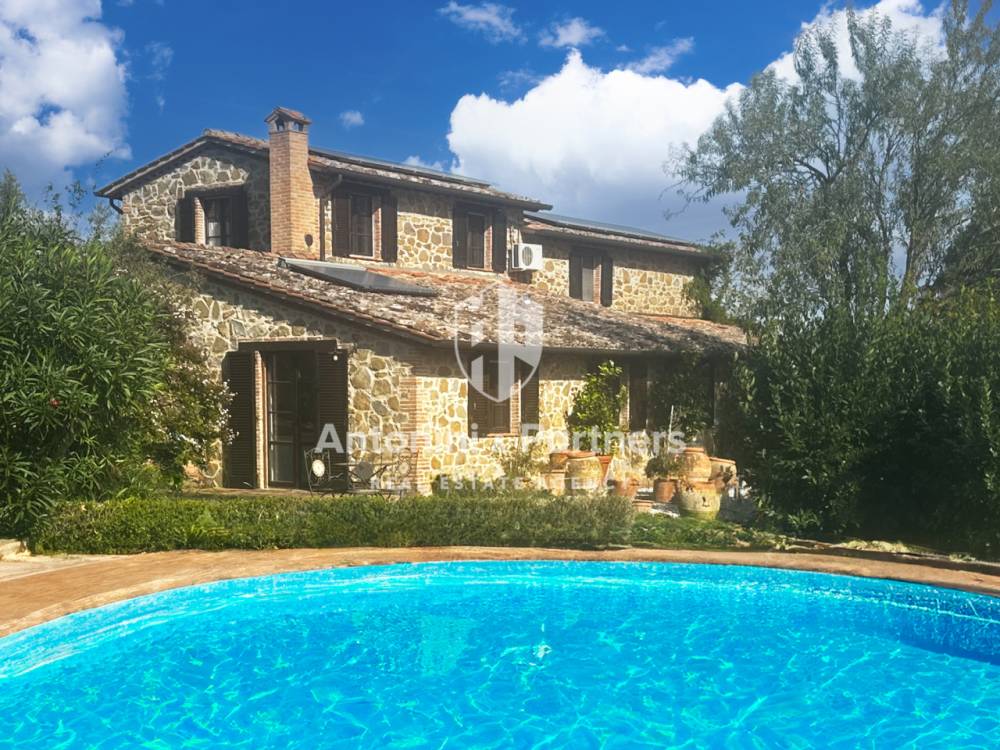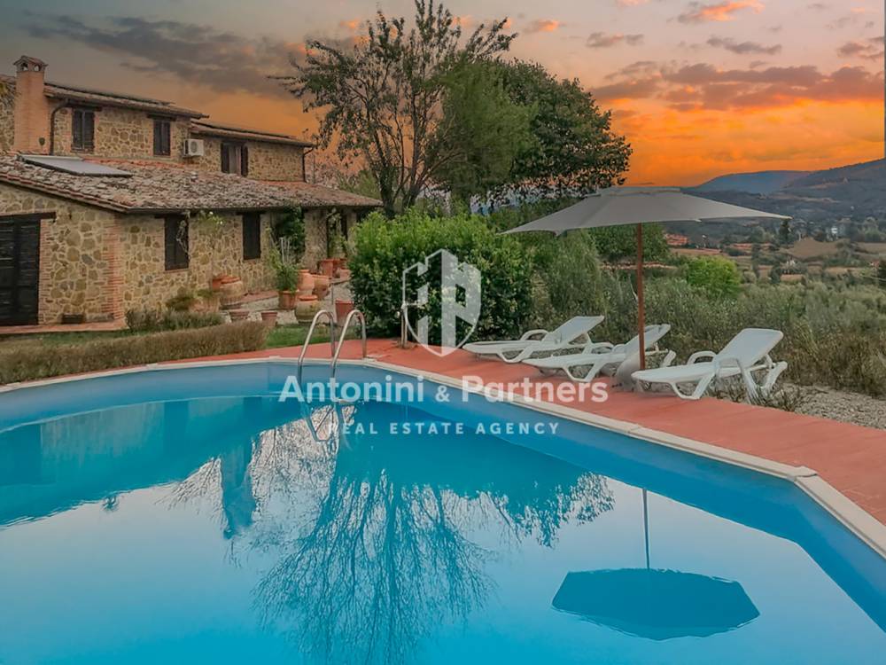 Casale Poggio Belvedere è una elegante residenza di campagna con piscina, luminosa e molto panoramica. Si trova in Umbria, nelle adiacenze dell'antico borgo di Panicale annoverato tra i "Borghi più belli d’Italia" e premiato con la Bandiera Arancione del Touring club italiano. Una proprietà importante che si compone di un casale principale, un'ampia corte esterna con piscina e 5 ettari di terreno agricolo. Posta sulla dorsale di un verde colle, gode di una spettacolare vista panoramica sulla rigogliosa campagna circostante. Tutt'intorno un susseguirsi di uliveti, campi coltivati e boschi di lecci. Sullo sfondo i dolci declivi del Trasimeno. Il casale, perfettamente restaurato, presenta i caratteri tipici dell'architettura rurale umbra. Esternamente eleganti facciate in pietra naturale, tetti in coppi e la tradizionale scala esterna con ballatoio. Internamente pavimenti in cotto artigianale, soffitti di travi e pianelle e bagni in ceramica. Caratteristiche Casale Poggio Belvedere è un'abitazione di importanti dimensioni (286 mq) perfettamente distribuiti su due piani: - Un piano terra che ospita la zona giorno e si compone di: ingresso e portico, ampio open space cucina/pranzo con accesso diretto al giardino, salone con camino, due spaziose camere da letto, una delle quali oggi adibita a studio, bagno, cantina e magazzino. - E un piano primo, accessibile sia internamente che esternamente, che si compone di: due spaziose camere da letto, un bagno e un disimpegno. Il casale è dotato inoltre di: un moderno sistema di riscaldamento, impianto fotovoltaico (6 KW), pozzo e depuratore. Esterni Casale Poggio Belvedere dispone di un'importante area esterna (6.000 mq) composta di corte e podere. La corte esterna, introdotta da uno splendido viale alberato è completamente recintata e divisa in diverse aree funzionali: il portico, l'area relax con barbecue, il giardino rustico, la piscina panoramica con solarium e il parcheggio. Il podere di 5 ettari si divide invece tra un importante uliveto in produzione di 600 piante, il terreno agricolo e il bosco. Uso e destinazioni Casale Poggio Belvedere è un'ottima soluzione abitativa che combina rustica eleganza, confort moderni e uno straordinario ambiente naturale. Un'ottima prima o seconda casa, ideale anche per nuclei familiari numerosi, lontana dallo stress metropolitano e vicina a tutti i servizi. Una proprietà esclusiva che per ubicazione, dimensioni e caratteristiche costruttive può diventare anche un'ottima fonte di reddito se immessa nel fiorente circuito turistico internazionale di dimore di campagna. Distanze Casale Poggio Belvedere dista solo pochi km da Panicale ed è vicinissimo ai borghi storici di Città della Pieve e Castiglione del Lago e alle spiagge del Trasimeno. Perugia dista solo 20 km. Firenze (120 km), Roma e i suoi aeroporti (180 km) sono facilmente raggiungibili in tempi moderati.