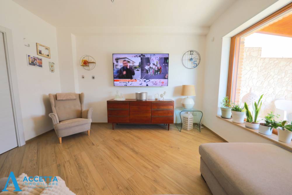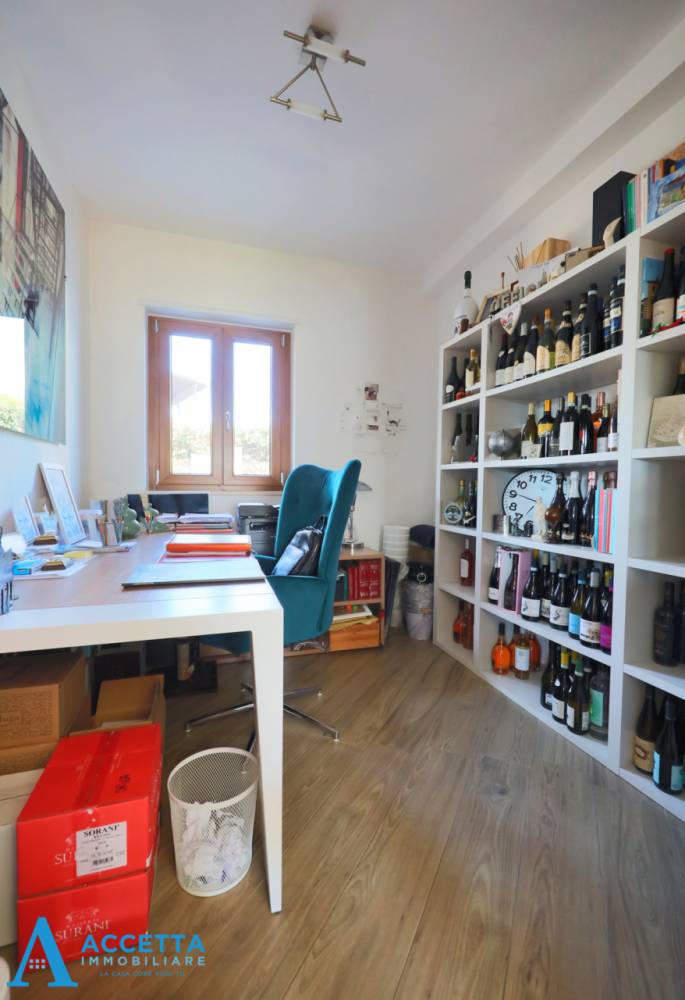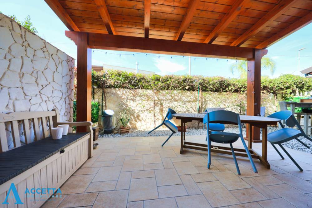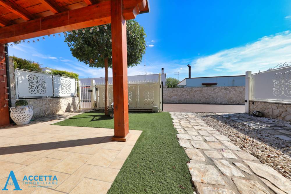 Proponiamo in vendita una prestigiosa e rifinitissima villa di recentissima costruzione, situata in un elegante complesso residenziale in località Lama, presso Via San Domenico, Taranto. L’abitazione, realizzata da maestri del settore con tecniche costruttive di ultima generazione e materiali ad alta efficienza energetica, è classificata in classe energetica A3 e si sviluppa su due livelli. Al piano terra si accede a un comodo open-space con angolo cottura, zona soggiorno/pranzo, oltre a un bagno, un pratico vano studio (o camera) e un ripostiglio. Il primo piano ospita una suite matrimoniale con cabina armadio e bagno privato, una seconda camera da letto, un ulteriore bagno e due balconi. Completano la proprietà un giardino privato sia antistante che retrostante, oltre a due posti auto di uso esclusivo in area comune adibita a parcheggio. La villa si distingue per le eccellenti e ricercate rifiniture ed inoltre dotata del massimo dei comfort grazie alle seguenti caratteristiche presenti nell'immobile: soffitto in legno coibentato con doppio cappotto termico ventilato, impianto di riscaldamento a pavimento, impianto fotovoltaico per la produzione di energia elettrica, solare termico per l’acqua calda sanitaria, cappotto termico sulle facciate, infissi in PVC effetto legno con doppio vetro e serrande elettriche, climatizzatori, impianto d’allarme, videocitofono Wi-Fi e cancello automatico, zanzariere, porta blindata, pavimenti e rivestimenti in gres porcellanato di prima qualità. L’immobile è in condizioni impeccabili, pronto per essere abitato, e rappresenta una soluzione ideale per chi cerca comfort, efficienza e design moderno in zona residenziale di Lama.