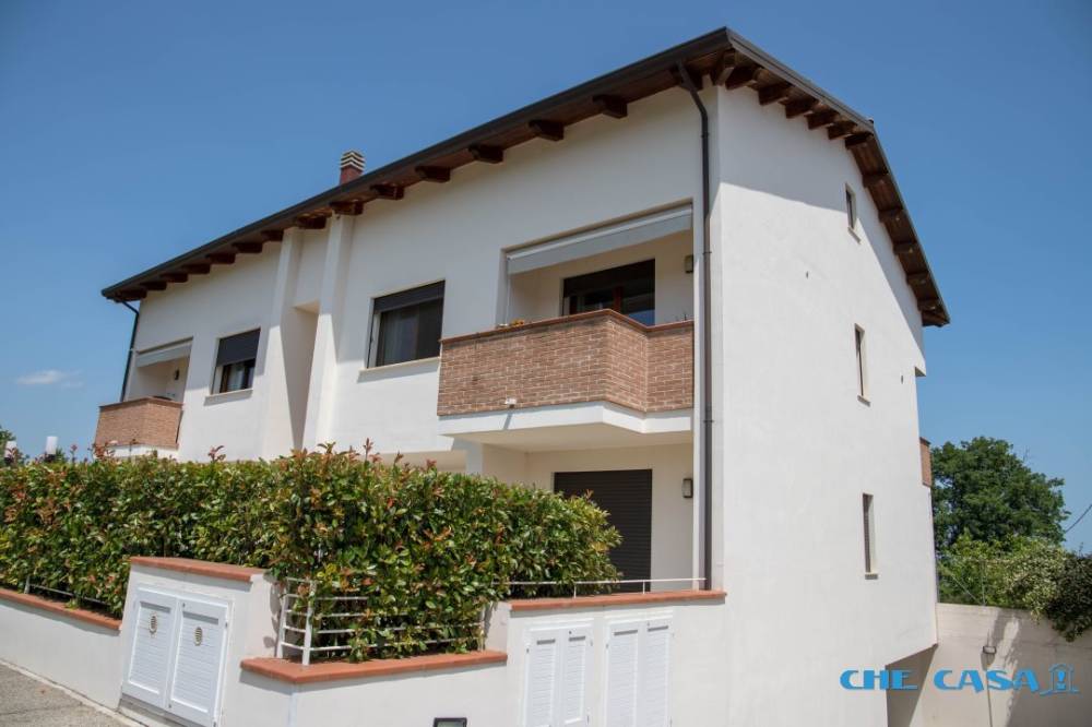 Proponiamo in vendita appartamento sito sulle prime colline di Morciano di Romagna, località Monte del Prete basso a 15 minuti dal mare. L'immobile fa parte di una villetta quadrifamiliare di recente costruzione, collocata di fronte ad un'ampia area verde utilizzata dai proprietari come area gioco/relax. Una rampa d'accesso comune conduce all'ingresso direttamento sull'ampia sala che gode di vedute panoramiche sulle colline circostanti e può contare come valvola di sfogo sulla presenza di un bel terrazzino esterno. Il piano inferiore è completato da un disimpegno che consente l'accesso al bagno ed alla cucina abitabile che, a sua volta dispone di un balcone vista mare. Nel sottoscala è presente una comodo ripostiglio. Il piano superiore è collegato da scala in muratura dritta e comprende 3 camere ed un bagno (con destinazione di sottotetto). Al piano seminterrato è presente un comodo garage. La soluzione è di recente costruzione con riscaldamento a pavimento, cappotto esterno, condizionatori, parquet e finiture di pregio, con una buona classe energetica che assicura consumi contenuti. Per ulteriori informazioni e contatti, CheCasa! di Morciano, 0541.85.80.82. - Maggiori Dettagli: Climatizzato, Balcone o terrazzo vivibile, Porta blindata, Vista mare