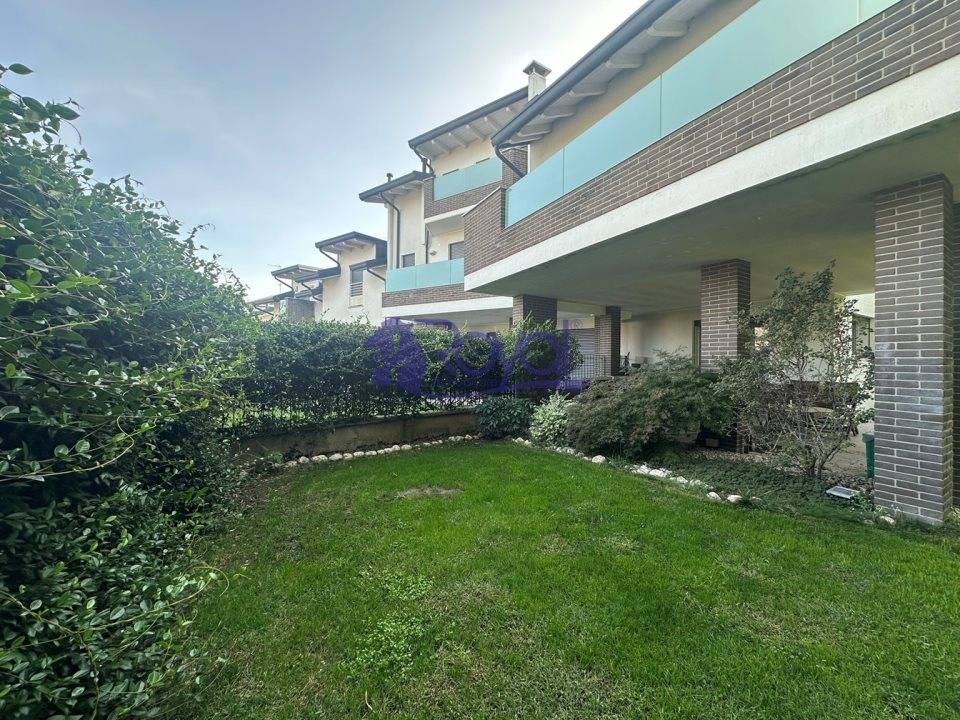 L'abitazione è posta in una signorile palazzina, dalla finiture ricercate e ricca di verde, ubicata in una bellissima zona residenziale di ultima realizzazione, tranquilla e comoda per l'ingresso autostradale o gli spostamenti con i paesi limitrofi, potendo sfruttare le vicine vie principali di collegamento! All'appartamento si accede a piedi percorrendo un gradevole vialetto condominiale, oppure direttamente dal piano garage, utilizzando il vano scala / ascensore se si parcheggia nell'autorimessa di proprietà. La casa è suddivisa in ingresso su zona living soggiorno con cucina, disimpegno con ripostiglio, doppi servizi, camera singola e camera matrimoniale con cabina armadio. L'area esterna di proprietà la fa da padrona con il giardino di ben 215 mq, dotato di ingresso di servizio indipendente da strada e porticati di ulteriori 40 mq, il tutto circonda l'appartamento che può quindi godere di ampi spazi dove potersi rilassare oppure trascorrere momenti di convivialità nella bella stagione. L'abitazione è dotata di riscaldamento a pavimento, ventilazione meccanica controllata, impianto di irrigazione, smart domotica per gestione luci e tapparelle, zanzariere, impianto di climatizzazione con pompa di calore posto nella zona living e nella camera matrimoniale (quella singola è comunque accessoriata di predisposizione), predisposizione impianto di allarme, oltre impianto fotovoltaico condominiale. Presente box singolo di generosa metratura, posto auto di proprietà e cantina. - Maggiori Dettagli: Climatizzato, Porta blindata