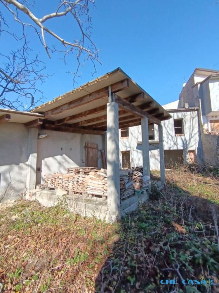 GEMMANO: Casa allo stato grezzo abbinata disposta su 2 livelli con scala centrale per collegare i piani. Al piano terra è possibile realizzare la zona giorno con cucina e salotto, al pimo piano 2 camere con balcone e bagno. Giardino e altro fabbricato con portico di proprietà di altri 35 mq circa. Terreno recintato. - Maggiori Dettagli: Giardino privato