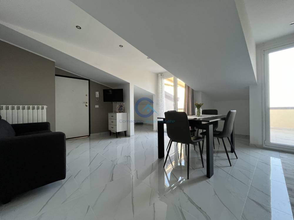 A Catanzaro Lido, in zona panoramica adiacente viale Crotone, porzione di attico mansardato di recente costruzione, completamente e finemente arredato a nuovo, posto al terzo e ultimo piano in condominio servito di ascensore e area parcheggio. All'interno è così composto: ingresso su soggiorno living con angolo cottura e accesso al terrazzo condominiale, due camere, bagno con doccia e vano lavanderia. Dotato di riscaldamento autonomo alimentato a metano, climatizzatori in tutti gli ambiente, portoncino blindato e posto auto riservato in corte condominiale. Ideale per studenti e/o ricercatori universitari. Disponibile da Novembre.