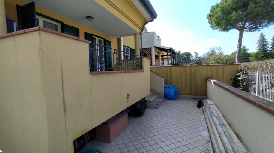 -piano terra da cucina/pranzo/soggiorno, una camera, un bagno, un disimpegno e due terrazzi, portico e corte esclusiva pertinenziale;