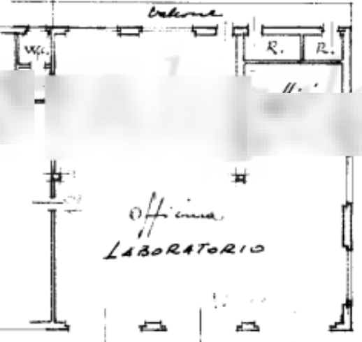 -autorimessa e locali laboratorio che si sviluppa totalmente al piano sottostrada come segue: accesso diretto da corte/parcheggio esterno attraverso ampia rampa carrabile di collegamento con la corte al Piano