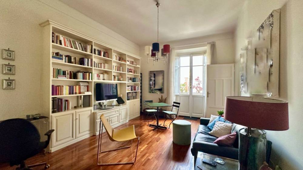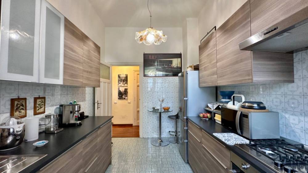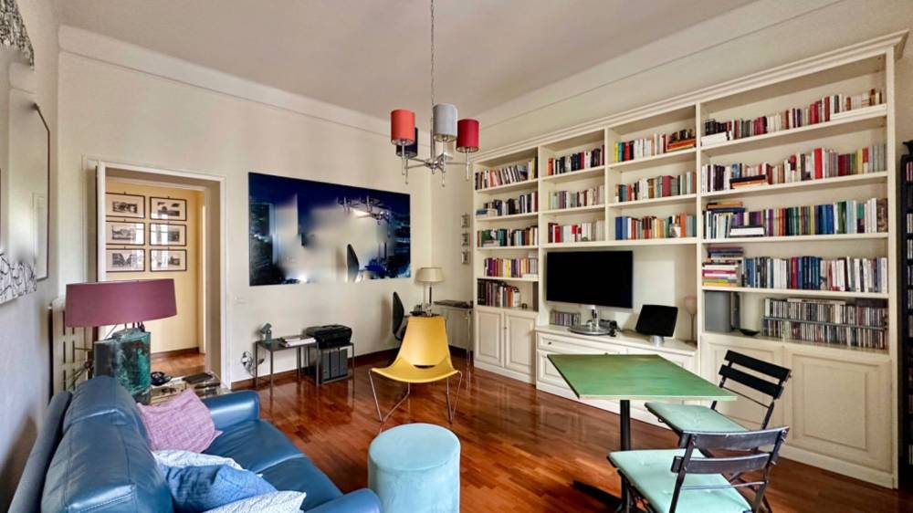 Lappartamento è caratterizzato da soffitti alti oltre tre metri e da una bella luminosità grazie alla sua esposizione angolare con affacci esterni su due lati, si distingue per latmosfera elegante e la distribuzione degli ampi spazi.