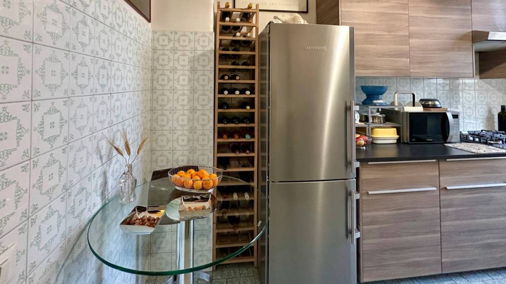 Dal disimpegno si accede poi alla zona notte, composta da due camere da letto, una cucina abitabile con balcone e un bagno finestrato.