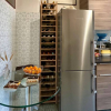 Un importante ingresso con armadiature a muro introduce alla zona giorno: una colonna funge da elemento scenografico e separa, con discrezione, le due aperture a tutta altezza che conducono al grande salone, dotato di doppio affaccio e balcone su Via Taro.