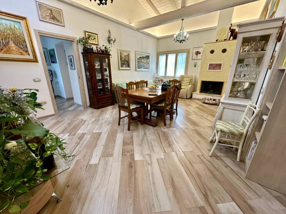 La cucina moderna e completamente attrezzata, con funzionale vano dispensa, si apre sul living, creando un ambiente conviviale e perfetto per la vita quotidiana o per ospitare amici e famiglia.