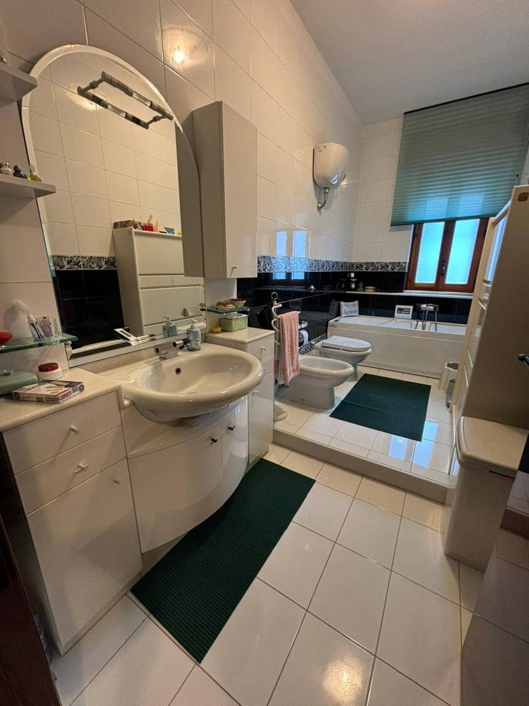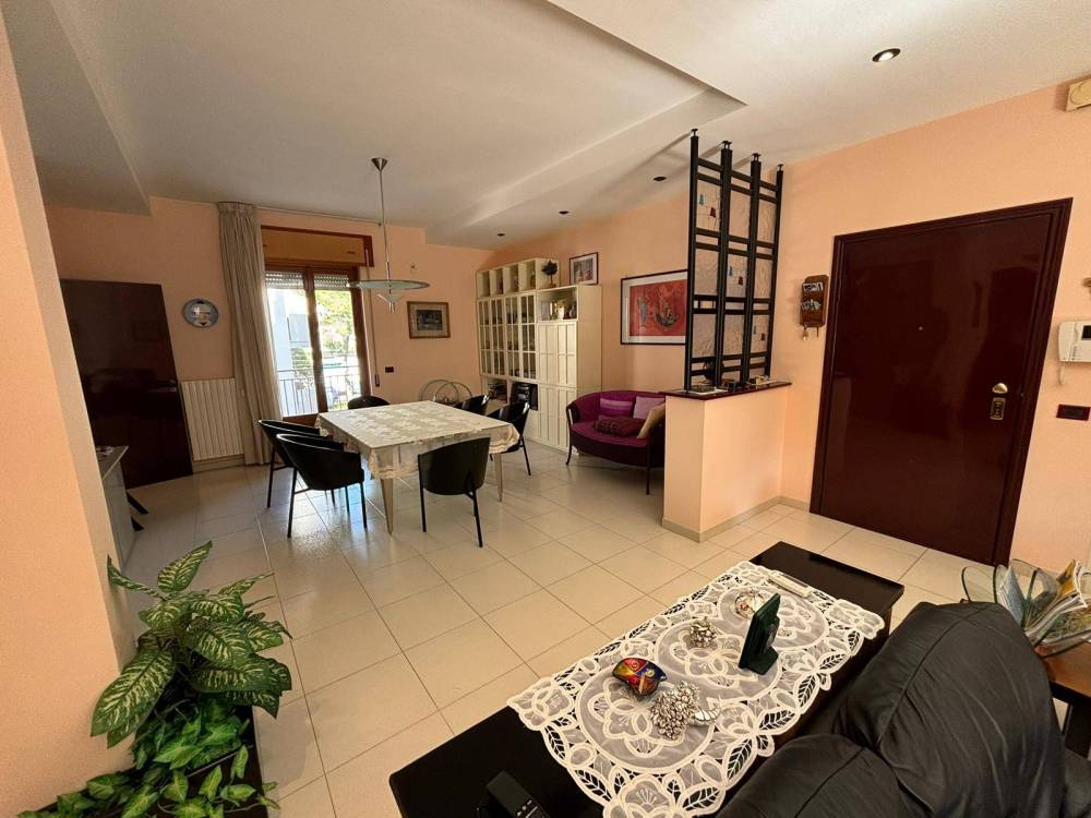 In zona centralissima e in contesto residenziale, luminoso appartamento posto al primo piano. Interno composto da ingresso in ampia zona giorno ambiente unico, cucinino con angolo lavanderia, tre camere da letto, bagno patronale con vasca e doppio servizio. Triplice esposizione con ampi terrazzini. Box e posto auto. Libero da subito.