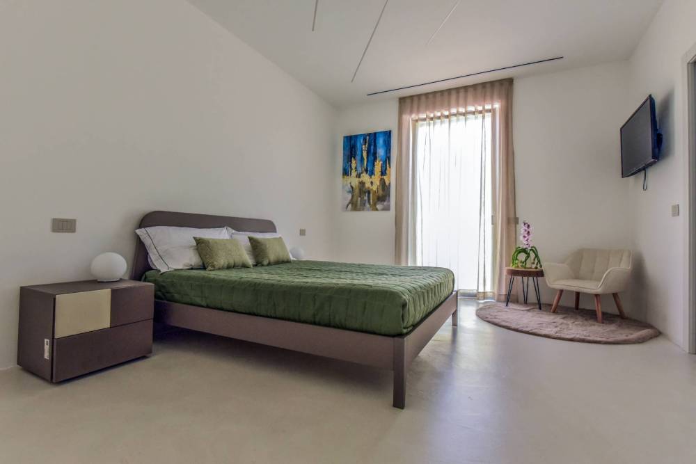 La master suite, ampia e sofisticata, regala unesperienza da boutique hotel: bagno di pregio con finiture ricercate, armadio con TV integrata e accesso diretto alla zona esterna.
