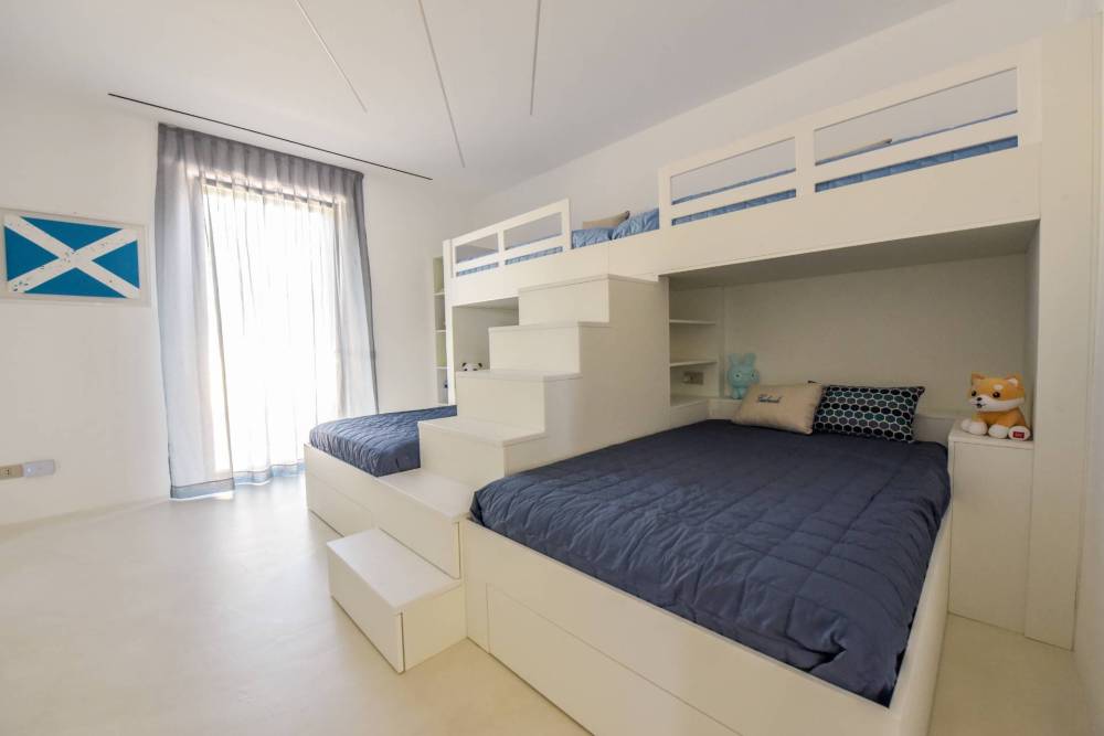 La villa ospita tre camere da letto, tutte con bagno en-suite e cabina armadio.