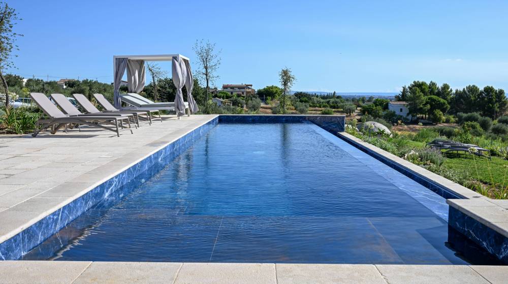 Piscina a sfioro riscaldata con idromassaggio e impianto a sale