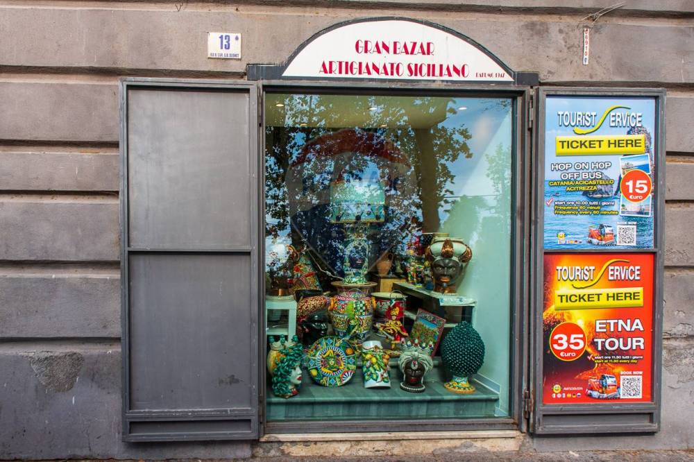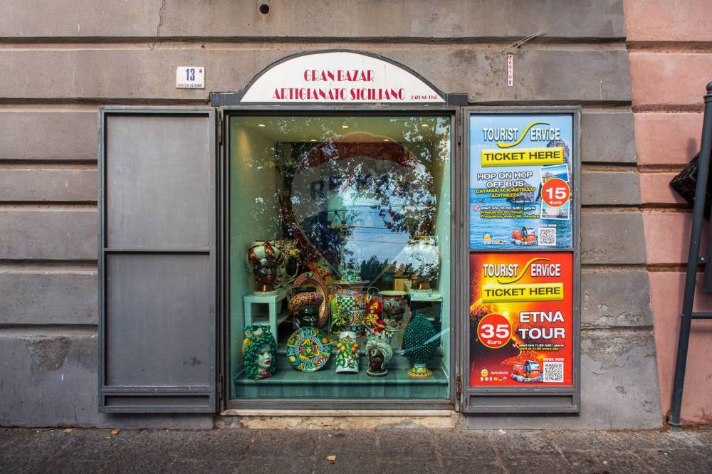 Oggi la bottega gode del centro nevraggio del flusso turistico catanese in quanto collega la spettacolare Piazza Duomo con la Piazza Alcala' zona di sosta dei bus che prende e lascia tutti i turisti provenienti dall'aeroporto e da tutte le destinazioni della Sicilia