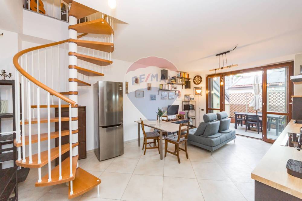 - Dal soggiorno si accede, tramite una scala a chiocciola, ad una soffitta mansardata SPP (senza presenza di persone) di circa 20 mq. con due lucernari Velux (dotati di tende oscuranti), ideale come spazio aggiuntivo.