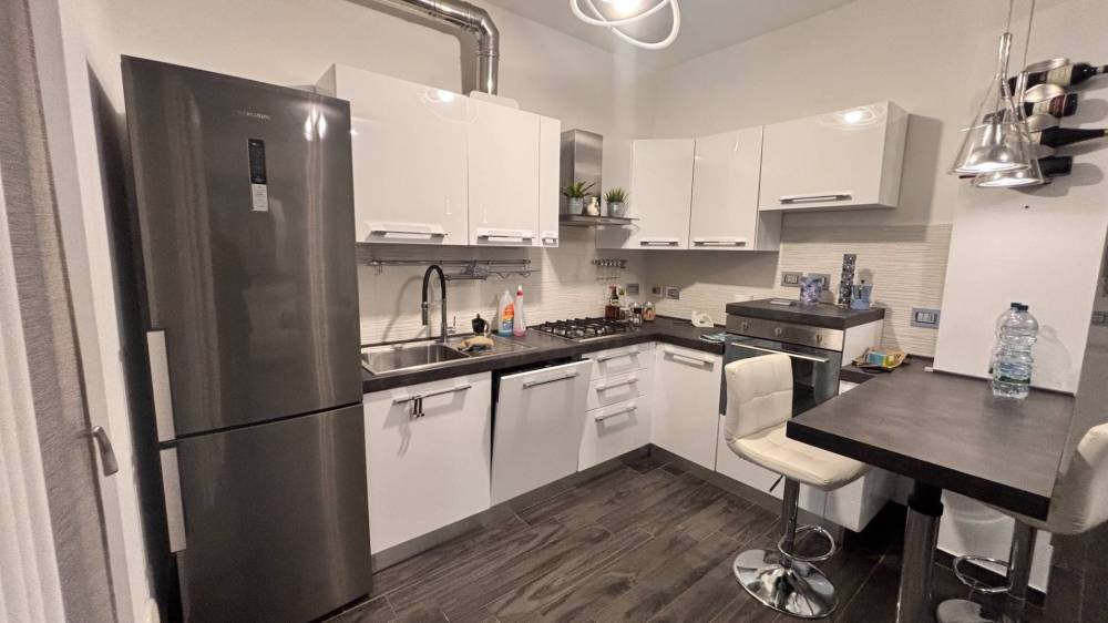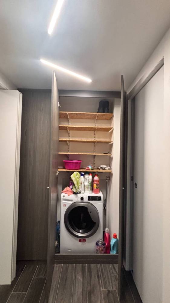 Limmobile è fornito di impianto di domotica Bticino my home con frutti/placche axolute Bticino, impianto di allarme, porta blindata, infissi in alluminio con doppi vetri e apertura a ribalta, tapparelle automatizzate, zanzariere, pavimenti in gres porcellanato effetto legno, sanitari sospesi, aria condizionata e videocitofono,